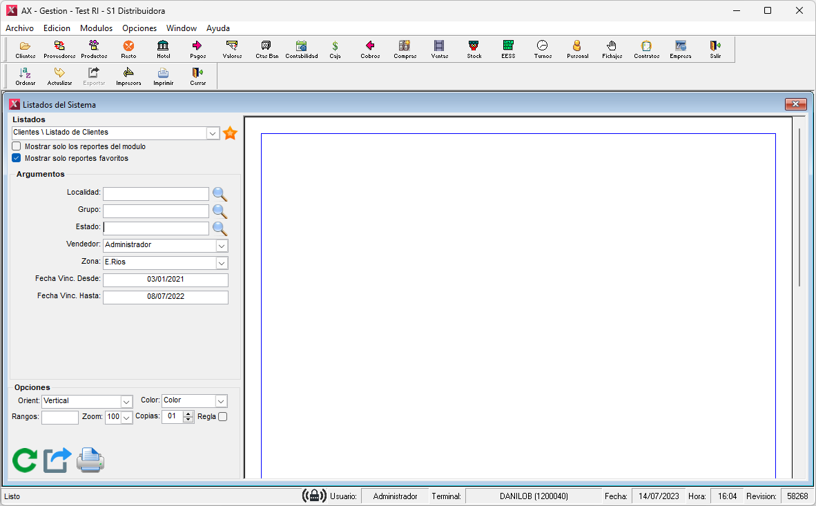 En esta sección se detallará el proceso de generación de reportes. Se podrán imprimir reportes en una impresora física o virtual del sistema operativo (ej. PDF ). También se podrá exportar reportes en distintos formatos de archivos.