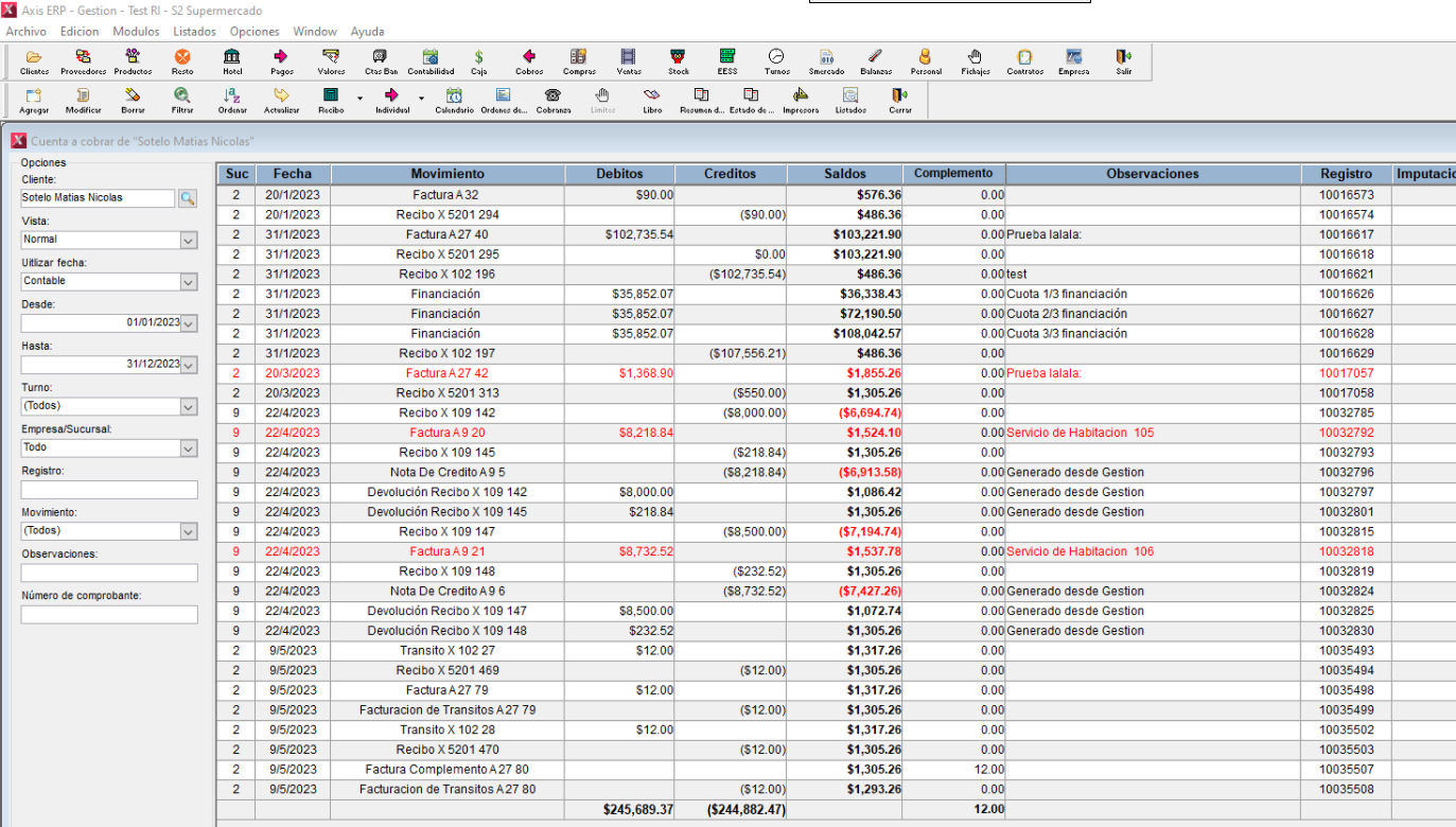• Alta, baja y edición de movimientos de cuentas a cobrar.