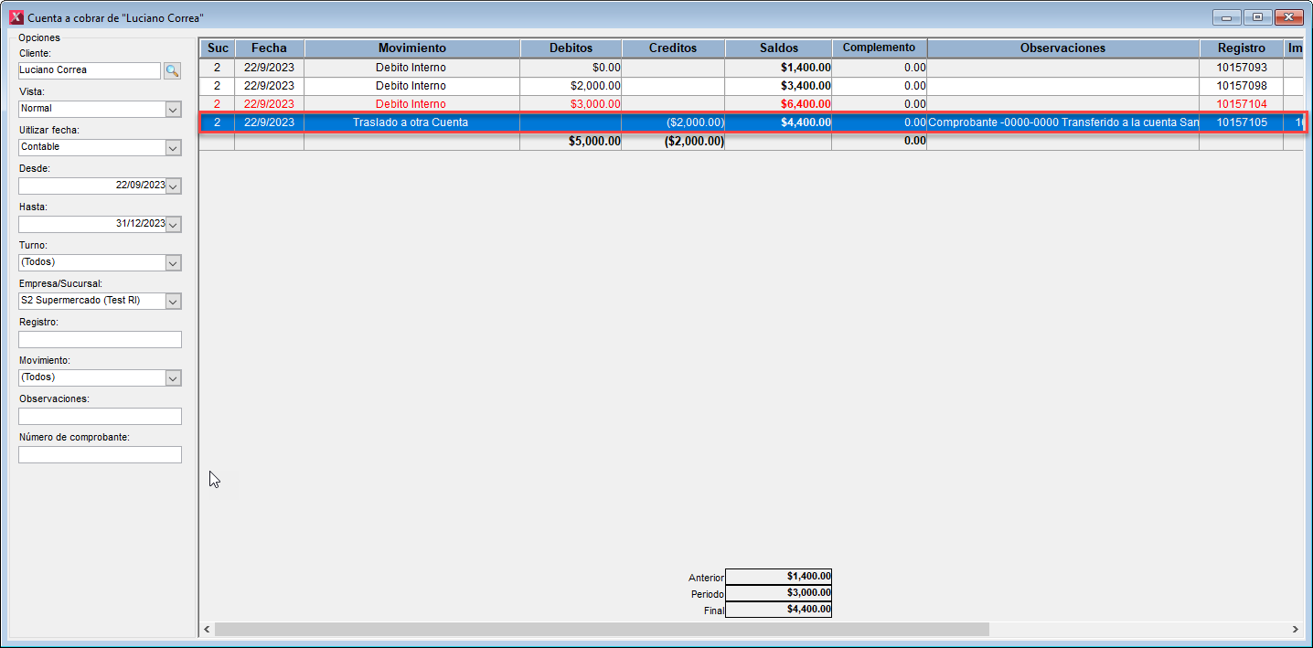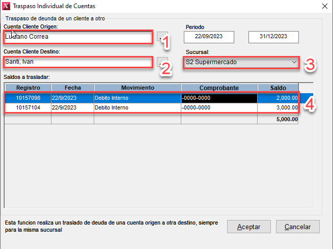 en la cuenta se vera reflejado el movimiento de traspaso de la deuda