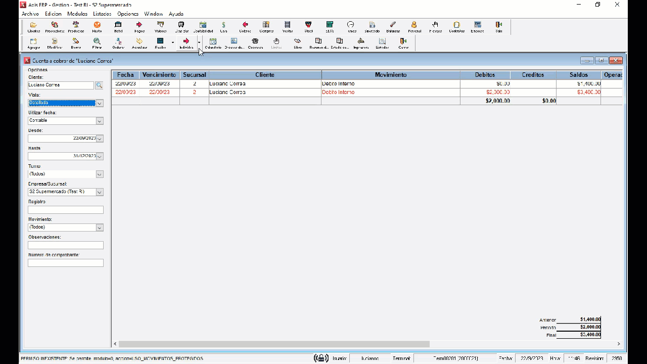 primero previamente tenes que ternar seleccionado a un cliente la cual traspasara la deuda.