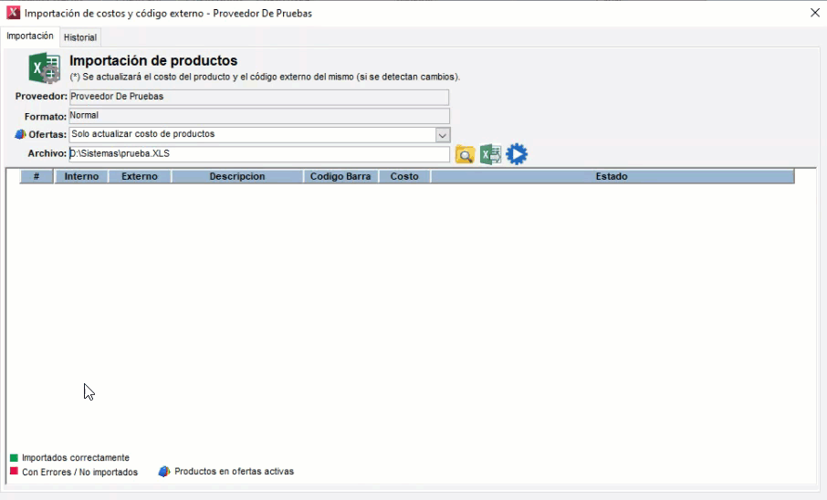 El Sistema permite actualizar los costos de los productos mediante la importación de un archivo Excel