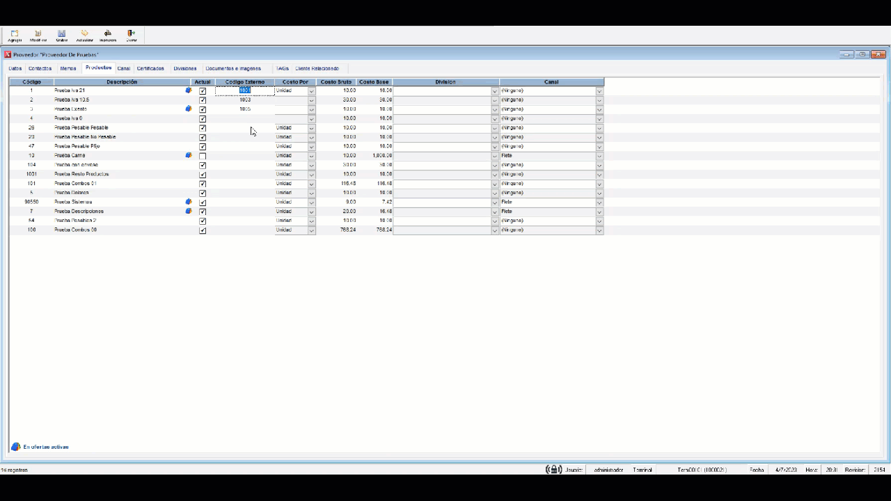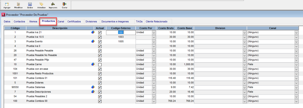 - Externo: Codigo externo del producto en la lista del proveedor.