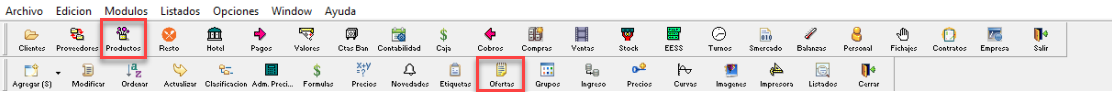 Desde el modulo de Productos se puede ingresar a la administración de ofertas, estas ofertas funcionan integradas tanto con: