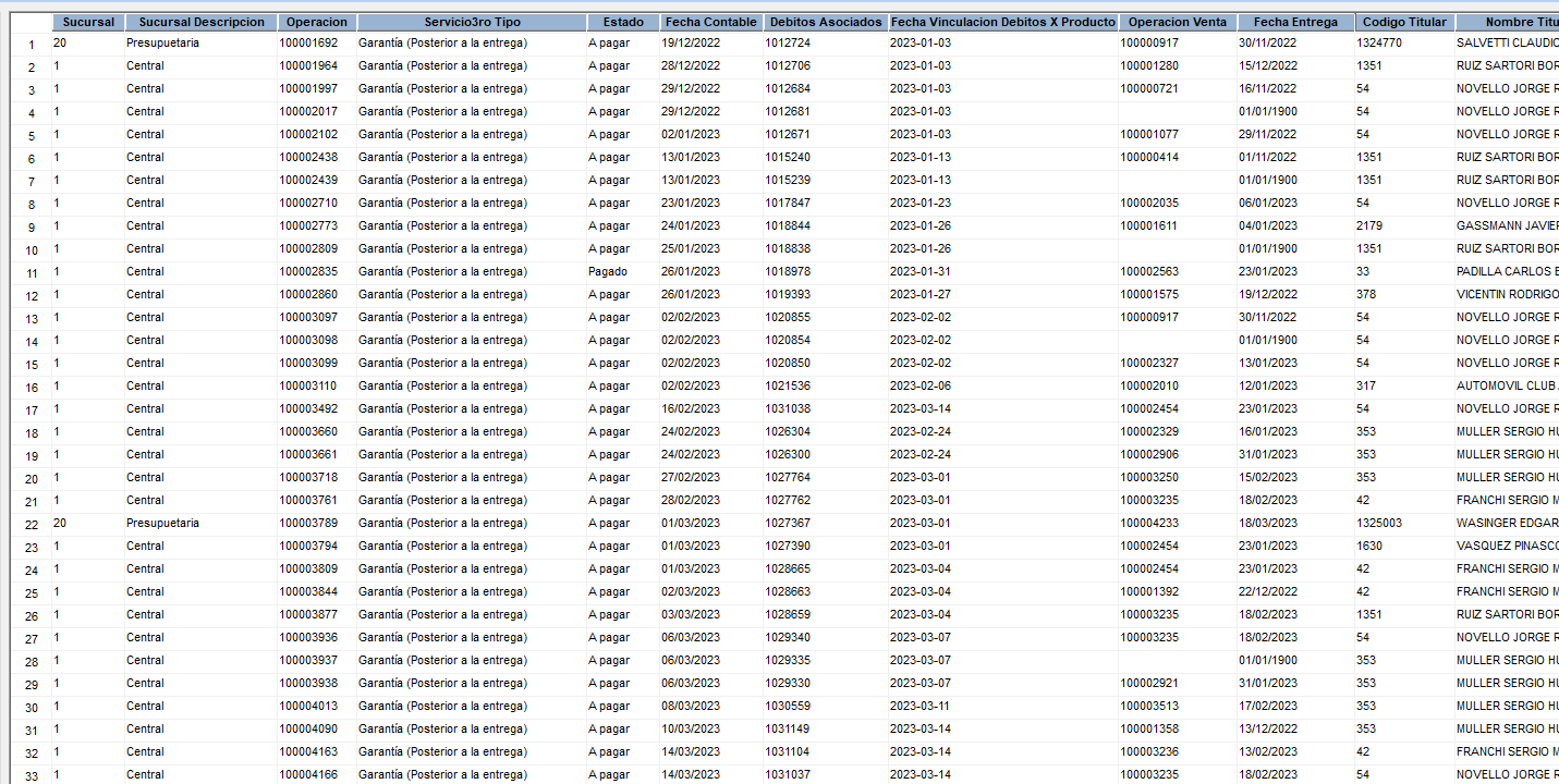 - SUCURSAL: ID de la sucursal del servicio.
