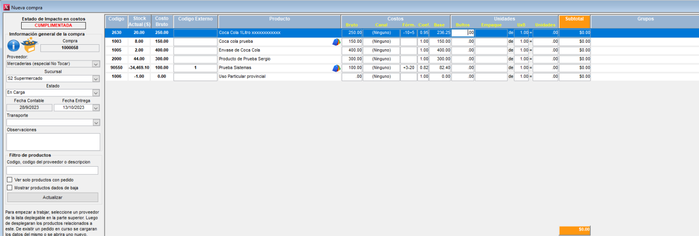 Se deben cargar los costos brutos de los productos, se debe tener en cuenta que los costos brutos NO incluyen IVA, ya que el calculo de precios incluirá el importe de IVA que corresponda según la alícuota que corresponda.