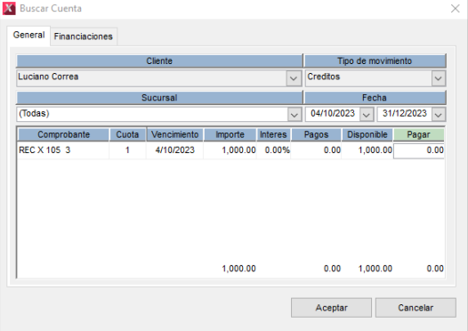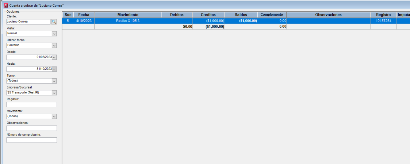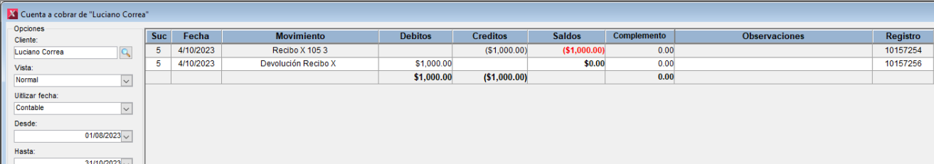 Si nos dirigimos al modulo de Pagos y observamos la cuenta relacionada del cliente, podemos ver lo siguiente:
