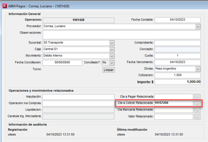 La cuenta a pagar relacionada es un debito interno en la cuenta del proveedor relacionado, este debito interno se encuentra liquidado con la liquidación de pagos realizada anteriormente.