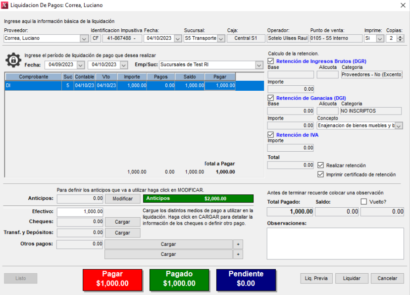 Para la demostración vamos a devolver el total del comprobante