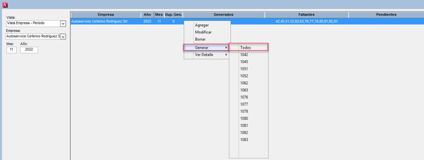•  Se debe seleccionar la empresa para la cual se desea generar.
