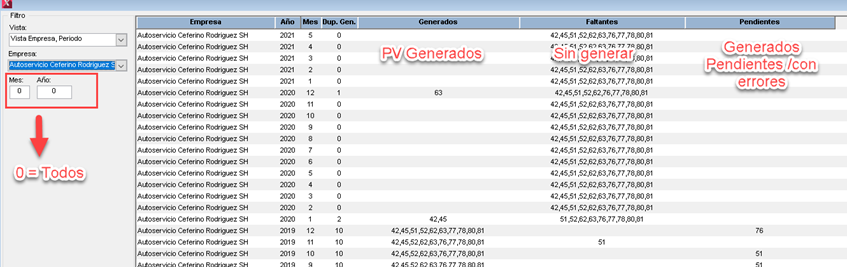 •  Ingresar mes y año que se desea filtrar (0 = Todos).