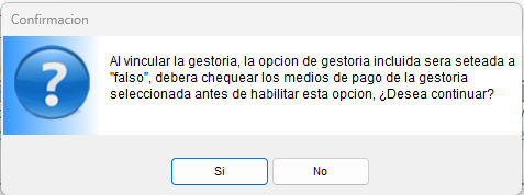 Se puede vincular una gestoría a una venta de forma tal que el precio de la gestoría este incluido en el precio de la operacion de venta. Al realizar esto la gestoría dejara de tener visible los medios de pago.