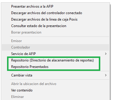 Como se deben configurar Gestion, Spool y Poxis para la presentacion los archivos de reporte a la AFIP